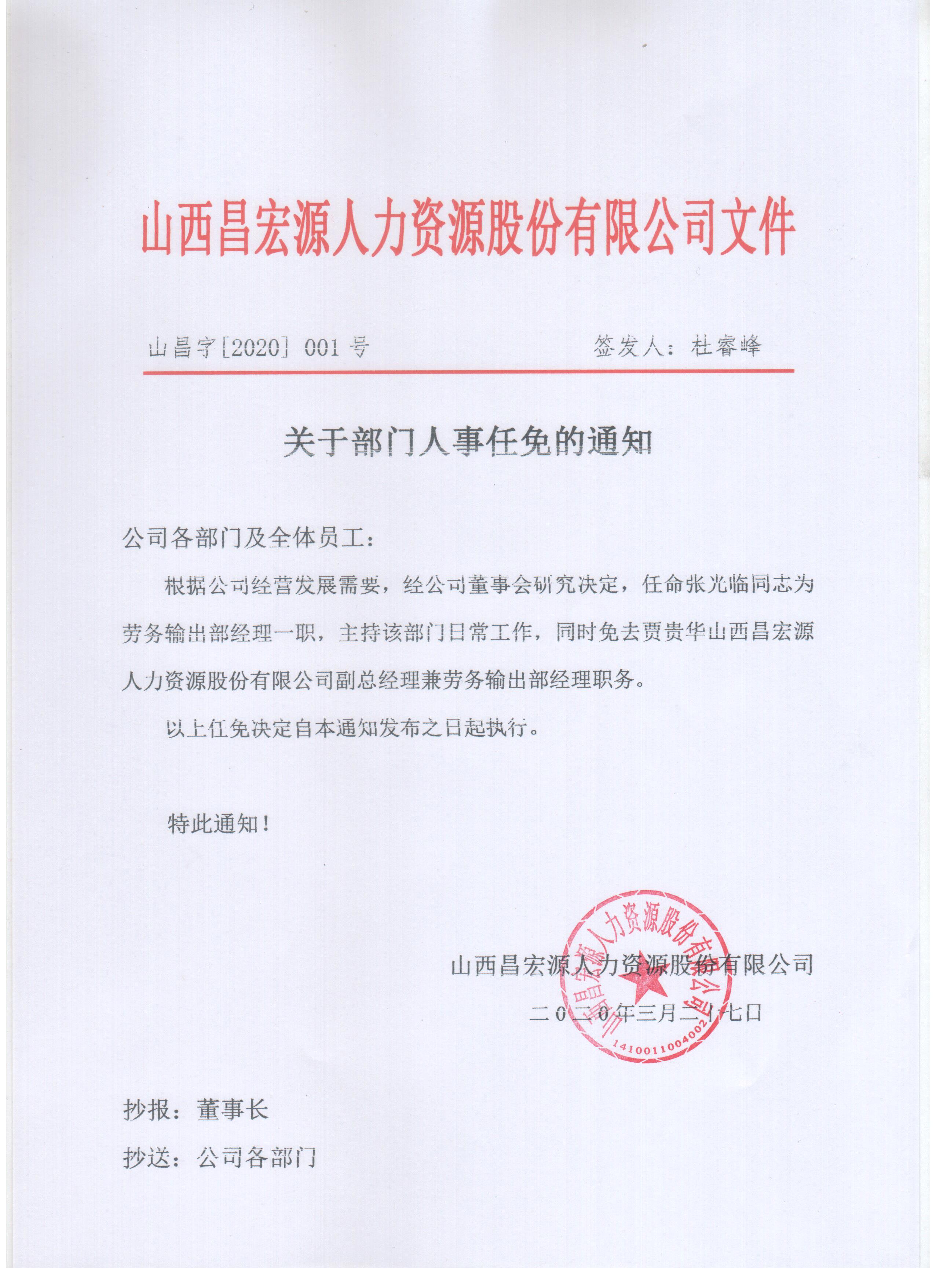 關(guān)于部門人事任免的通知