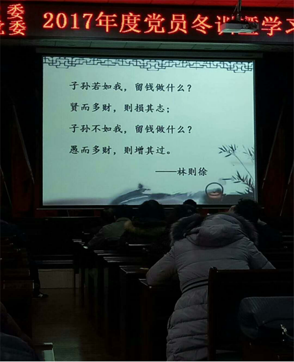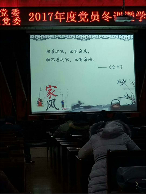 1月24日,由李霄老師授課講說如何保持政治清醒,做廉潔敬業(yè)的黨務(wù)干部;由劉佶鵬老師講解企業(yè)黨支部如何開展“三會(huì)一課”;由吉麗麗老師授課關(guān)于堅(jiān)定文化自信,推進(jìn)社會(huì)主義文化繁榮興盛的課題;***后由鄭巨東老師進(jìn)行了十九大精神總體輔導(dǎo)。